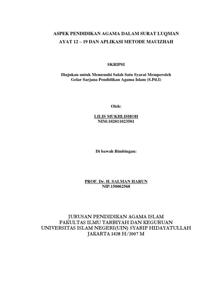 | Judul Surah: Top Pdf Konsep Pendidikan Keluarga Dalam Surat Luqman Ayat 12 19 123dok |